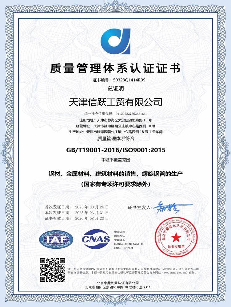 Tianjin Xinyue Industrial and Trade Co.,Ltd, as a subsidiary under Xinyue Steel Group, is mainly responsible of the exporting business of the group. Xinyue’s steel pipe is widely applied in petroleum & gas pipeline, water pipeline, construction & building, dredging and piling projects engaging in petroleum & gas pipeline.